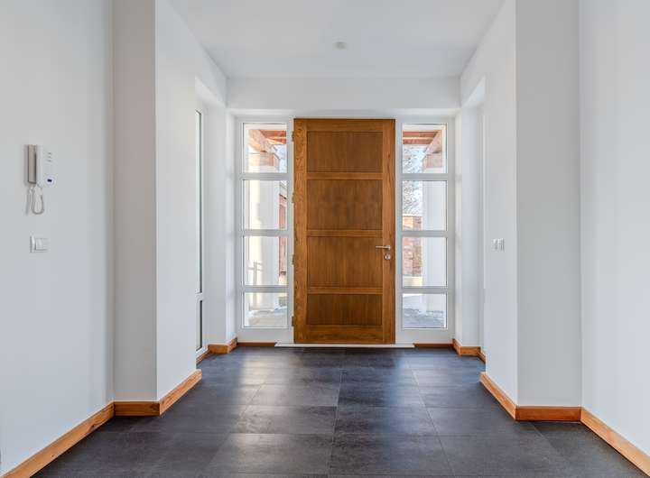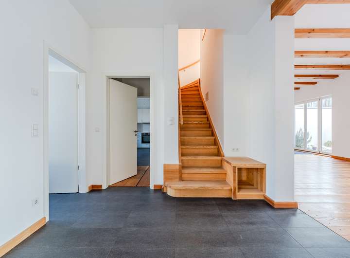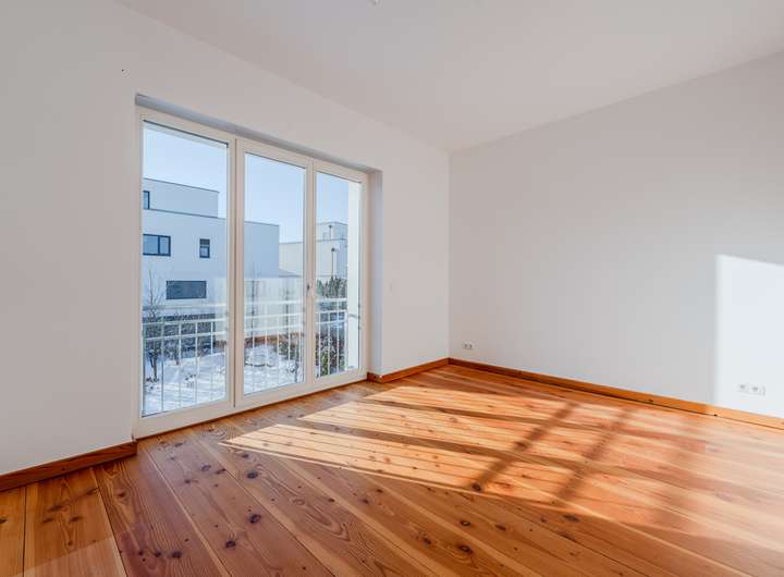 • Einbruchhemmende, bodentiefe Holzfenster in allen Räumen