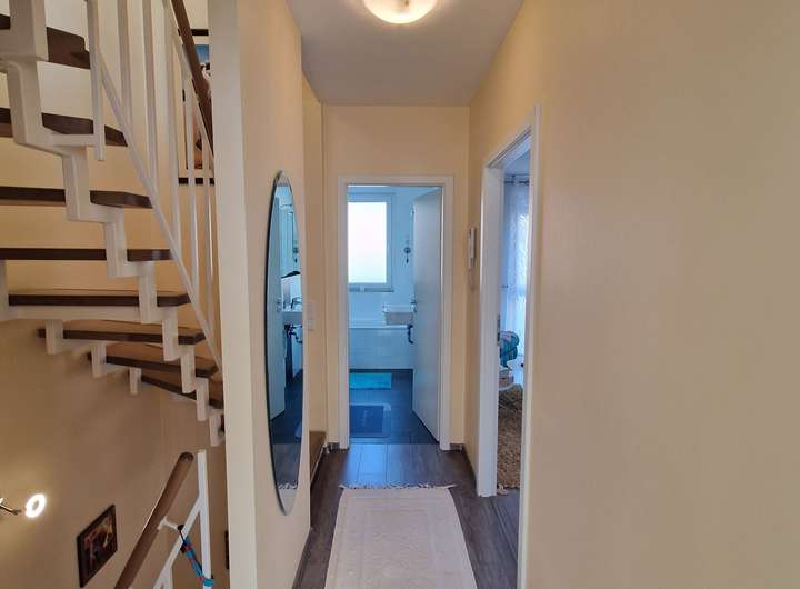 Das Erdgeschoss wurde 2021 renoviert und ist mit smarter Haustechnik ausgestattet. Zudem befindet sich hier eine Fußbodenheizung und alle Rollläden im EG sind elektrisch bedienbar.