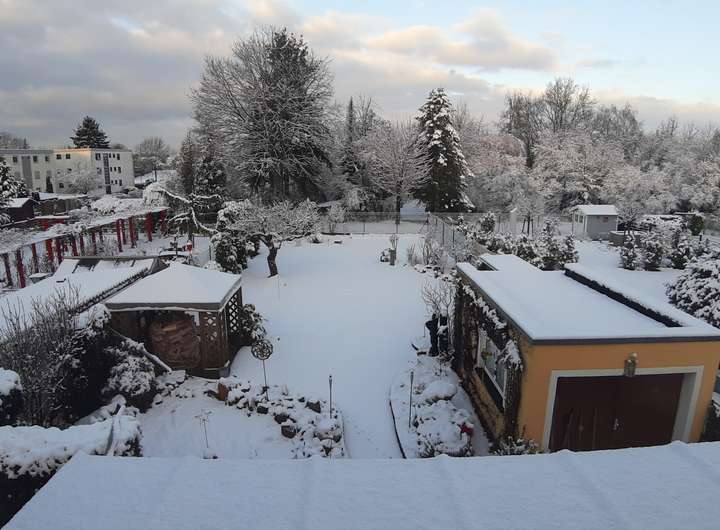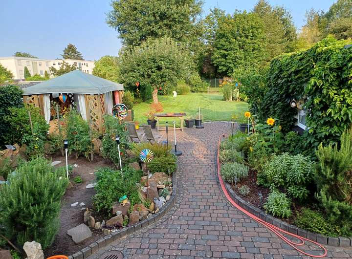 Ein angelegter Garten (teilweise Nutzgarten) sowie eine kleine Garage, derzeit als Hobbyraum/Gerätehaus genutzt, da die Zufahrt relativ eng ist, sowie ein grosser Aussenstellplatz, ausgestattet mit einer 10,5 KW Ladestation für E-Autos, stehen zur Verfügung.