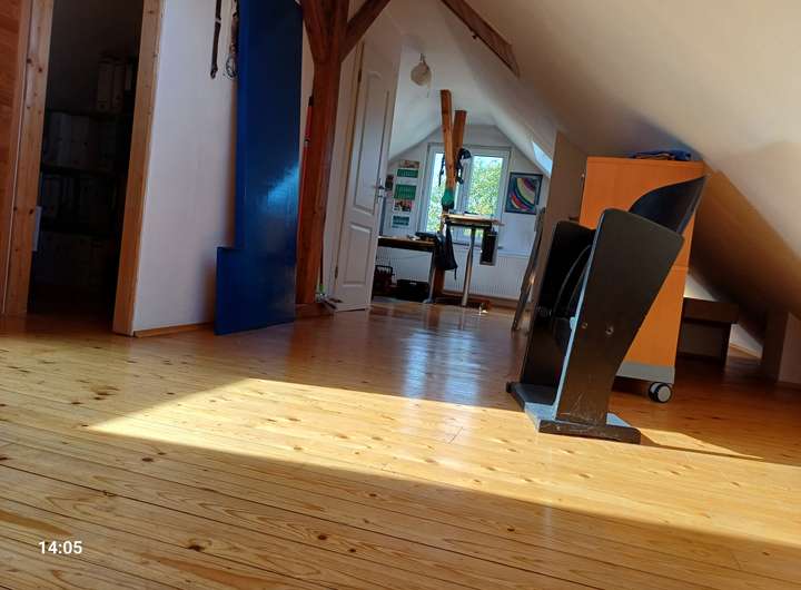Das ausgebaute DG kann gut als Atelier, Büro oder Kinderzimmer genutzt werden.