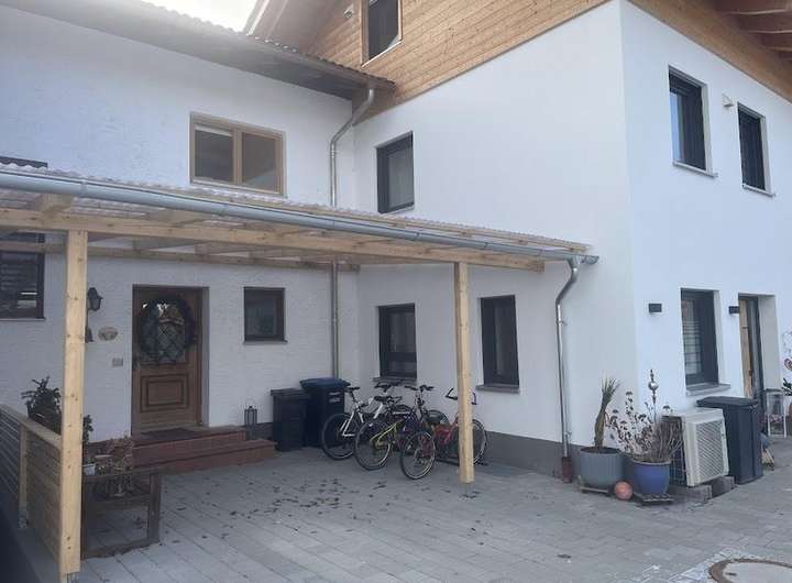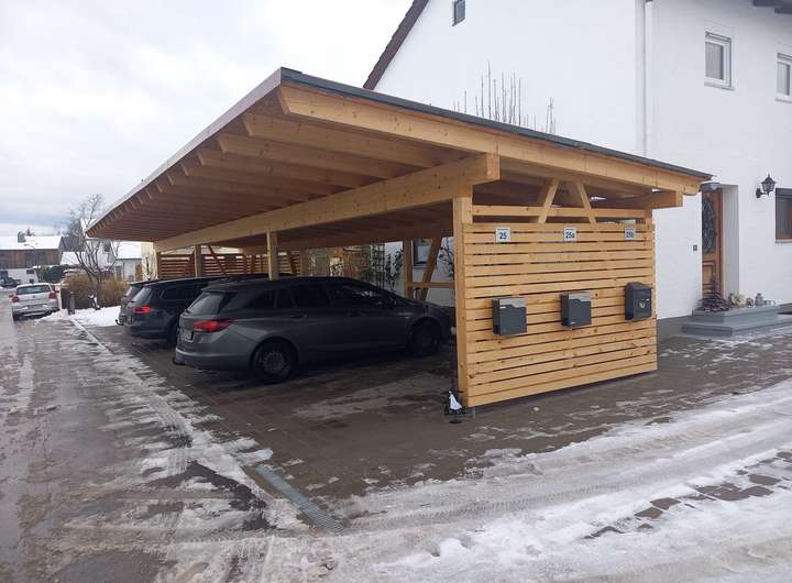 Zwei Carport Stellplätze gehören dazu, ebenso ein überdachter Stellplatz für Fahrräder