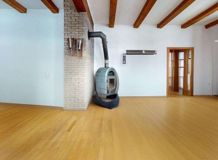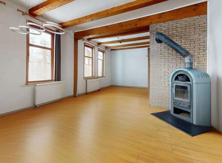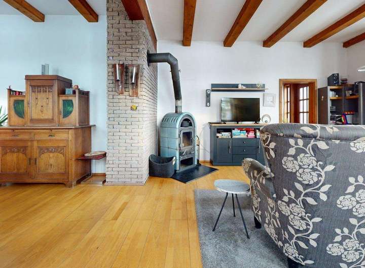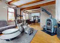 ° Helles Wohnzimmer im Erdgeschoss mit Kaminofen als zentralem Wohlfühlpunkt