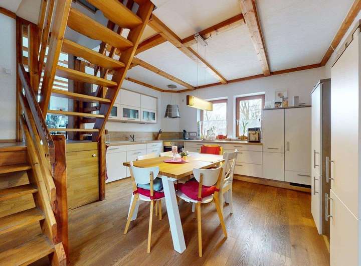 Ein großzügiges, sehr gemütliches Zuhause in naturnaher Lage mit freiem Blick auf Felder und Wiesen und besonders attraktiv für Pferdeliebhaber, die naturnah wohnen und ihre Leidenschaft für Pferde mit einem familienfreundlichen Wohnumfeld verbinden möchten.