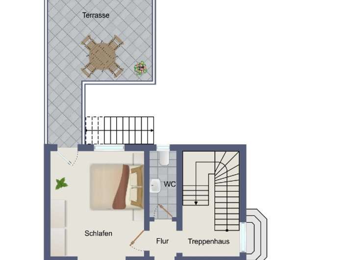+ komfortable Treppe bis ins Dachgeschoss (keine Einschubtreppe)