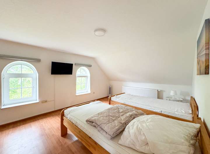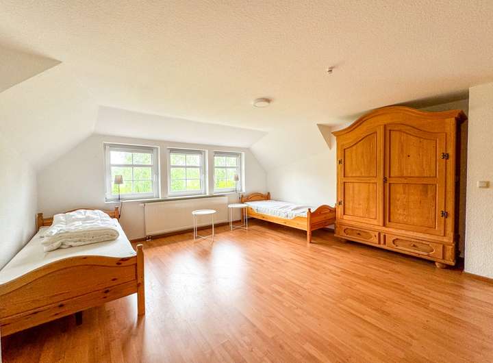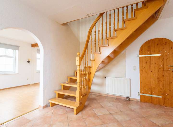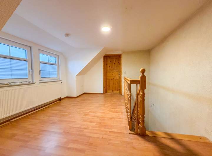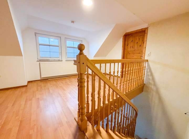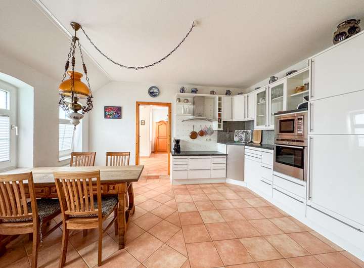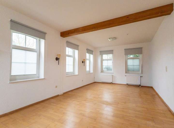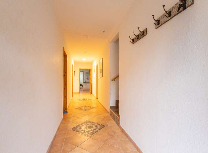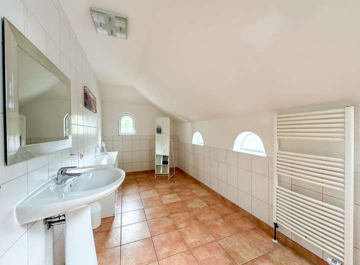 Das Haus verfügt über insgesamt acht Zimmer und drei Bäder und bietet damit ausreichend Komfort auch für größere Haushalte. Die Raumaufteilung ist durchdacht und ermöglicht eine flexible Gestaltung ganz nach individuellen Bedürfnissen. Große Fensterflächen sorgen für helle, freundliche Wohnräume und lassen den Blick in die umliegende Natur schweifen.