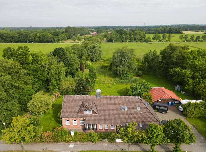 Dieses attraktive Landhaus befindet sich im charmanten Ort Münkeboe, einem beliebten Teil der ostfriesischen Gemeinde Südbrookmerland. Die Lage bietet eine ideale Kombination aus ländlicher Ruhe und einer guten Anbindung an die umliegenden Städte. Eingebettet in eine malerische Landschaft mit Wiesen, Feldern und kleinen Kanälen, lädt die Umgebung zu ausgedehnten Spaziergängen, Radtouren und Naturgenuss ein.