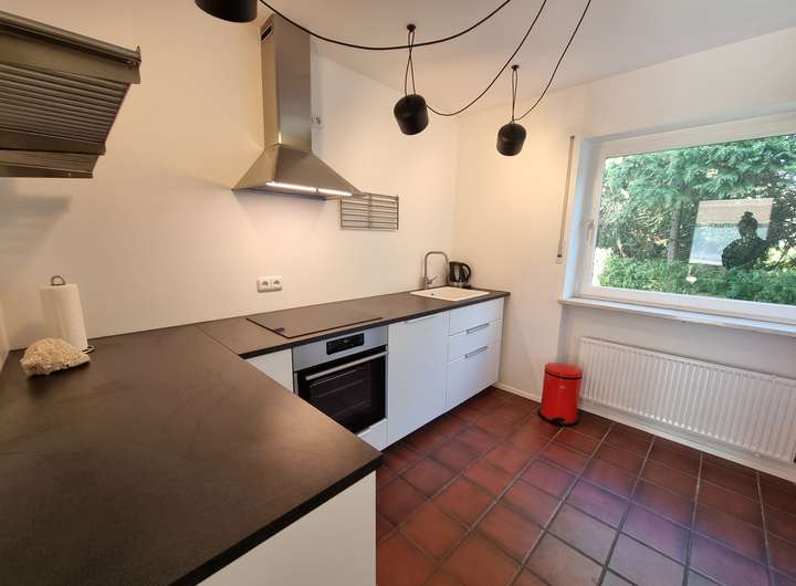 Waschmaschine und Trockner sind vorhanden. Der schön natürlich eingewachsene und sonnige Garten lädt zum Entspannen ein. Ein langer Süd-West-Balkon erstreckt sich über zwei Zimmer im ersten Stock.