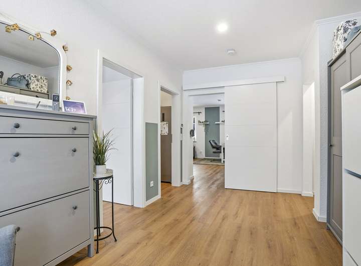 Schon beim Betreten des Hauses zeigt sich die Wertigkeit dieses Bungalows. Klare Linien, eine durchdachte Raumaufteilung und moderne Materialien vermitteln sofort den Eindruck, in einem erstklassig geplanten Zuhause angekommen zu sein.