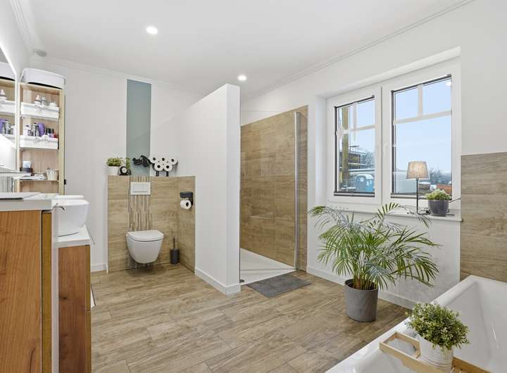 - LED-Beleuchtung in Flur, Wohnzimmer, Bad und Gäste-WC