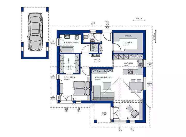 Im angegebenen Preis ist das Grundstück bereits enthalten. Gerne planen wir den Hausbau gemeinsam mit Ihnen auch auf Ihrem bereits vorhandenen Grundstück. In einem ausführlichen Beratungsgespräch ermitteln wir für Sie gerne eine detaillierte Gesamtkostenaufstellung. Das Angebot ist unverbindlich und freibleibend, exklusive der Baunebenkosten wie z.B. Hausanschlüsse, Außenanlagen... Abbildungen und Grundrisse zeigen Extras! Das Haus ist gerechnet " Zur Ausstattung fertig"