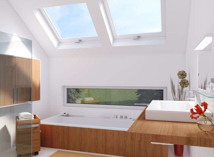 Abgerundet wird das moderne Design von zahlreichen bodentief ausgeführten Fenstern, die das Haus seiner Umgebung öffnen.