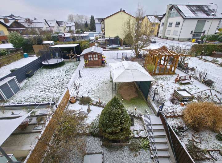 Der pflegeleichte, südwestlich ausgerichtete, Garten lädt zu entspannten Grillabenden, Spielstunden mit den Kindern oder kleinen Gartenprojekten ein.