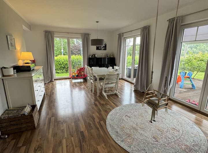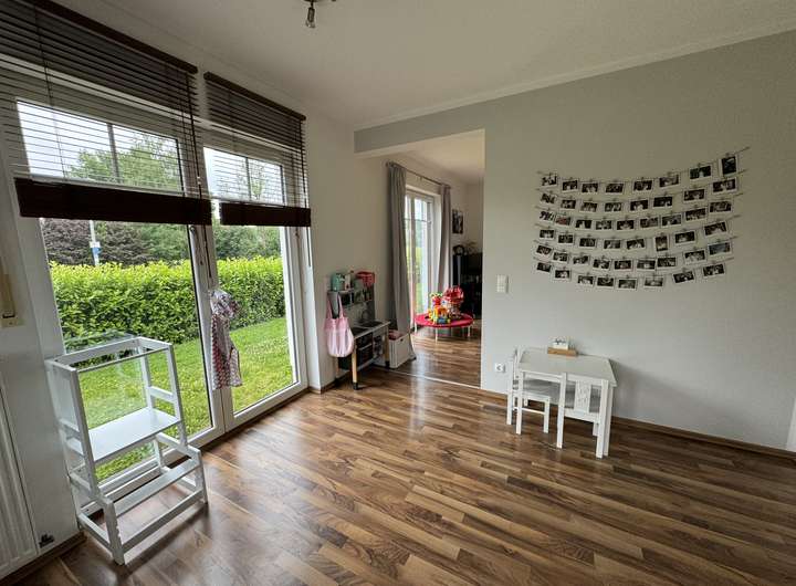 Besonders an diesem Haus ist der Garten direkt am Naturschutzgebiet gelegen. So ist die wunderschöne Natur direkt aus dem Fenster und Garten zu bestaunen und gleichzeitig ist es nicht weit zu Kindergarten, Schule o.ä.. Das Haus befindet sich am Anfang eines damaligen Neubaugebietes, weshalb nicht nur die verkehrsberuhigte 30-er Straße, sondern auch die vielen jungen Familien eine besondere Nachbarschaft ausmachen.