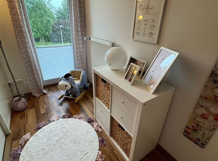 Das Haus wurde mit neu- sowie hochwertiger Ausstattung versehen und verfügt über ein großzügiges Grundstück von ca. 560 m². Durch bodenlange Fenster ist nicht nur ein unverbauter Blick ins wunderschöne Naturschutzgebiet Almetal aus fast allen Zimmern möglich, sondern das Haus auch sehr hell. Fußbodenheizung sorgt in Küche, Wohnzimmer und Badezimmern für eine angenehme Wärme. Das Haus erstreckt sich über zwei Etagen und verfügt über ein Badezimmer mit begehbarer Dusche, extragroßer Badewanne sowie ein Gäste-WC mit zusätzlicher Dusche.