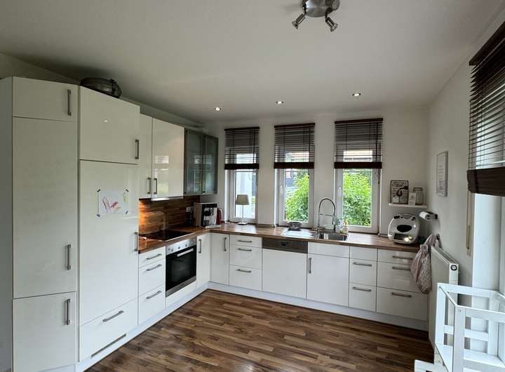 Eine moderne und hochwertige Einbauküche mit enthaltenen E-Geräten rundet den gehobenen Standard ab.