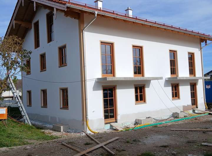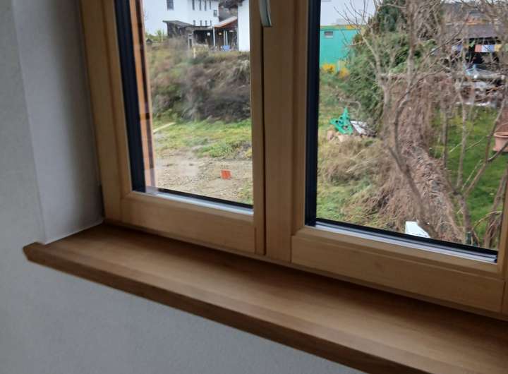 Hochwertige Innenausstattung mit Holz-Alufenster, Holzböden, Fliesenböden, elektr. Rollläden, Fensterbänke aus Eiche, dezentrale Wohnraumlüftung, Treppenstufen und -geländer aus Eschenholz.