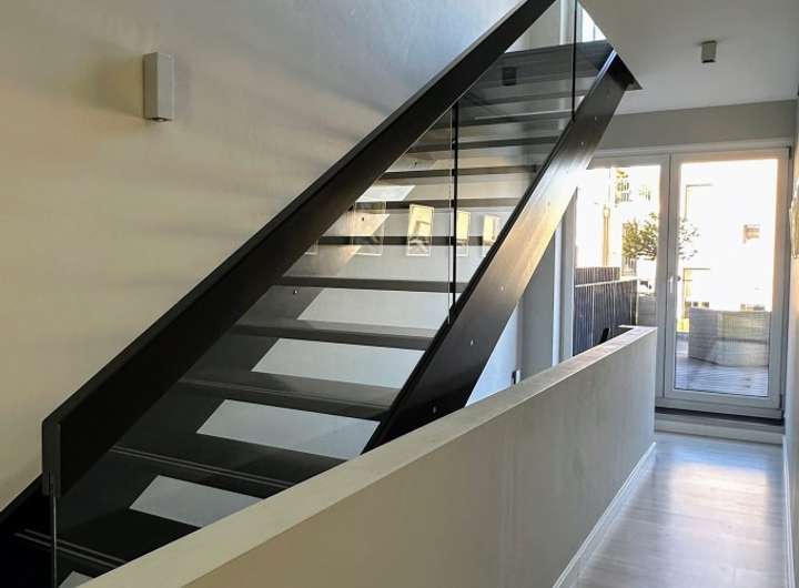 - Designtreppe mit Glasgeländer in Hochglanz schwarz