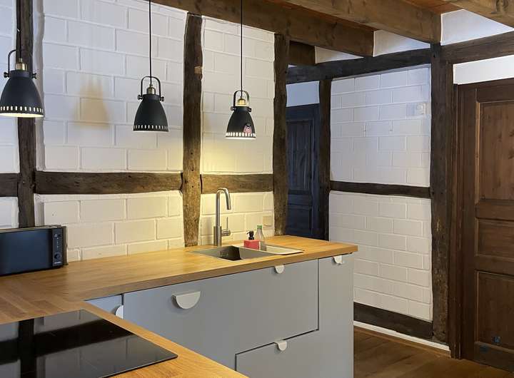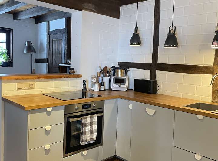 Die vorhandene Einbauküche sowie ein zusätzlicher Kaminofen können vom Vormieter übernommen werden.