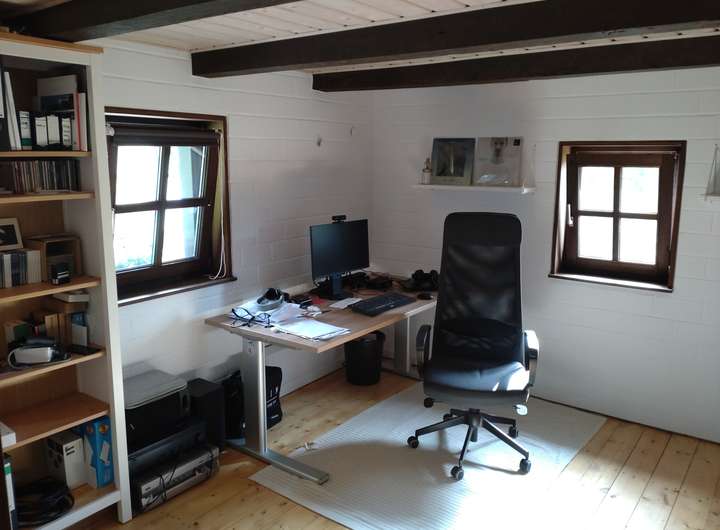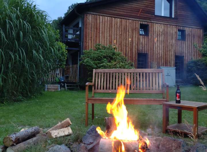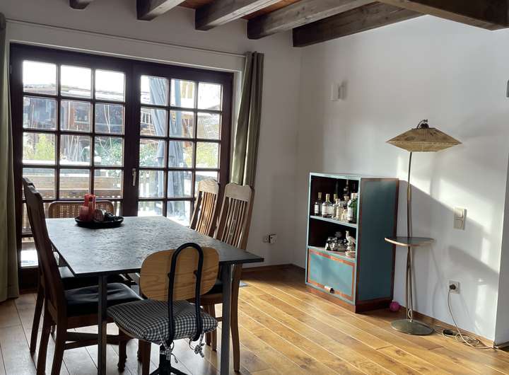Die Immobilie erstreckt sich über drei Etagen und verfügt über drei Badezimmer, wodurch sie sich ideal für Familien oder Paare mit Platzbedarf eignet. Das ca. 500 m² große Grundstück bietet einen liebevoll angelegten Garten, durch den ein kleiner Bach fließt – ein echtes Highlight, das dem Haus eine ganz besondere, idyllische Atmosphäre verleiht.