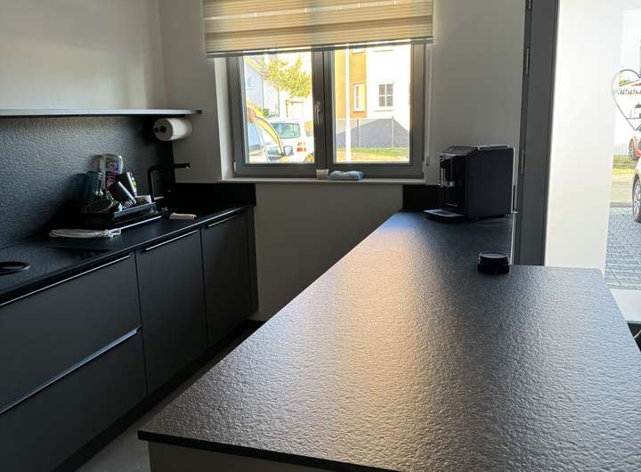 Beim Betreten des Hauses gelangt man direkt in die Küche, die als zentraler Eingangsbereich dient. Von hier aus führen mehrere Treppen in die verschiedenen Wohnbereiche und schaffen eine spannende, architektonisch interessante Aufteilung.