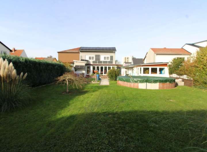 Ein unverkennbares Highlight dieser Immobilie ist hier der große Garten mit Pool Gartenhaus und Terrasse/Wintergarten.