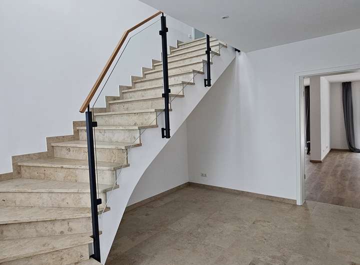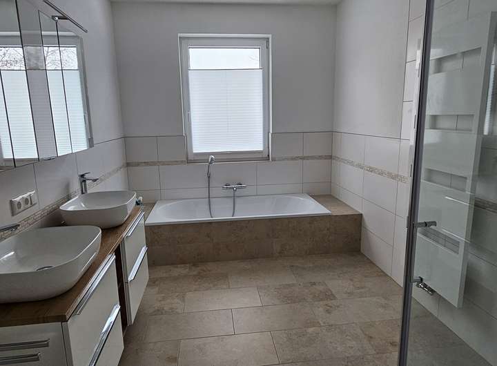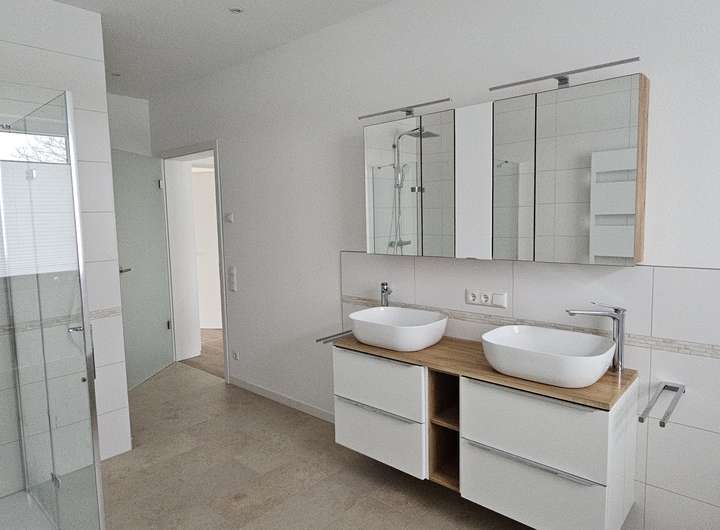Die Ausstattung ist hochwertig und lässt keine Wünsche offen. Die großen Fensterflächen lassen viel Licht ins Haus. Das Haus ist modern ausgestattet mit edlen Fußbodenbelägen, Fußbodenheizung, elektrischen Rollläden und einer Be- und Entlüftungsanlage und bietet höchsten Wohnkomfort.