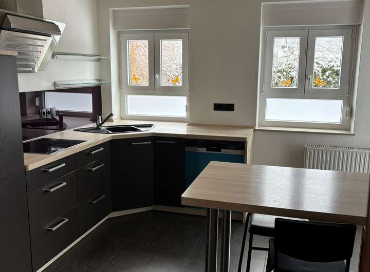 Fliesen, Laminat, Einbauküche, Pelletofen