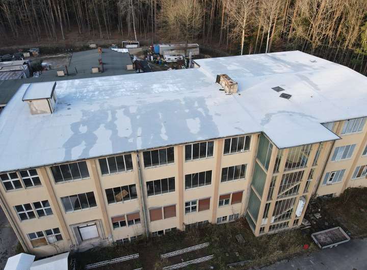 Es handelt sich bei der angebotenen Immobilie um ein ehemaliges Fabrikgelände mitten im Grünen.