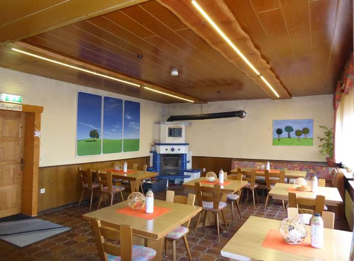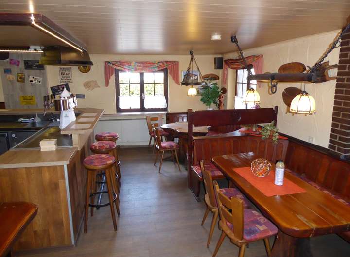 Die konzessionierte Gastronomie mit Küchenbetrieb verfügt über 120 Sitzplätze und besteht aus zwei Sälen und dem Thekenbereich mit Sitzgruppen. Dazu kommt der aus zwei Räumen bestehende Küchenbereich und 3 WC-Bereiche. Ausreichend Stau- und Serviceraum befindet sich im Untergeschoss bzw. Souterrain.