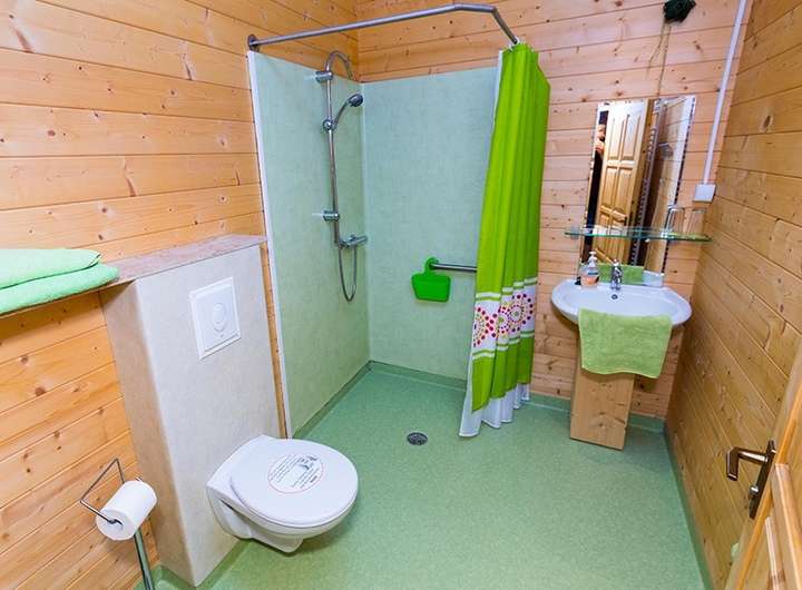 Es befinden sich 7 Blockhäuser mit Stellplatz auf dem Gelände. Die drei größeren wurden 2009 erbaut und die vier kleineren wurden 2020 errichtet. Die Blockhäuser bestehen aus Blockbohlen und einem Ziegeldach und sind als ganzjahrestaugliche Gebäude errichtet und für Ferienvermietung genehmigt. Eine Dauervermietung bedürfte noch einer zus. Genehmigung. Drei Blockhäuser haben 2 Schlafzimmer, 2 Duschbäder und ein Küchen-Wohn-Essbereich. Vier Blockhäuser verfügen über 1 Schlafzimmer, 1 Duschbad und 1 Küchen-Wohn-Essbereich. Jedes Blockhaus hat einen Terrassenbereich und jeweils eine eigene Wärmepumpe. Eine ebene Zugänglichkeit ist teilweise bereits vorhanden, bzw. leicht zu erreichen. So können die Blockhäuser auch spannend sein für ein Wohnkonzept für Menschen die Stufen nicht gut bewältigen können, oder dies bereits mit bedenken.