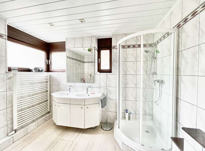 - großes Tageslichtbad mit Dusche und Eckbadewanne, Doppelwaschtisch,