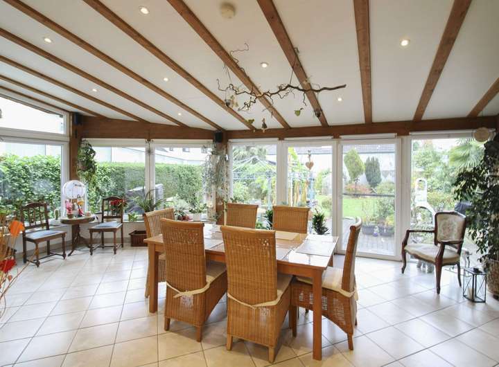 + Tolle Außenbereiche: Der Garten auf ca. 581 m² Grund lädt zum Verweilen ein - ein Balkon und ein Wintergarten bereichern das Erlebnis