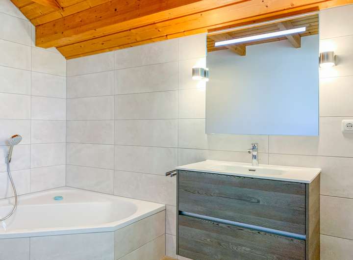 Wärmepumpe, PV-Anlage, Wasserenthärtung, Glasfaseranschluss, Lüftungsanlage mit Wärmetauscher, Einbauküche, Waschmaschine, 3-fach verglaste Fenster und Dachfenster, bodenebene Dusche, Badewanne, Sauna