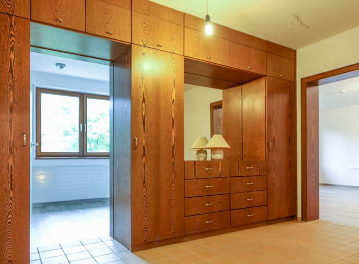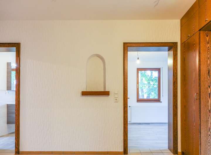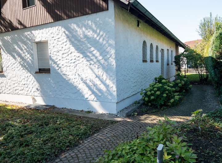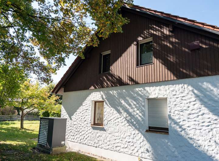 Dieses exklusive Einfamilienhaus mit ca. 185 m² Wohnfläche und 6 Zimmern wurde 1982 erbaut und 2021 bis 2025 modernisiert. Die Heizung wurde auf Wärmepumpe in Verbindung mit einer PV-Anlage umgestellt. Der Mieter hat die Möglichkeit, zusätzlich zum Mietvertrag einen Mieterstromvertrag über den lokal erzeugten Strom abzuschließen. Die eingebaute Wasserenthärtung erleichtert die Pflege der Bäder und spart das Enthärtungsmittel für Spül- und Waschmaschine. Ein Glasfaseranschluss sichert schnelles Internet im Haus. Das Haus bietet auf zwei Etagen großzügigen Wohnraum mit anspruchsvoller Ausstattung. Es verfügt über zwei Badezimmer, drei Schlafzimmer, zwei Büros, einen Wohnraum. einen Balkon mit Abstellschuppen, zwei Terrassen und eine Garage mit davor liegendem zusätzlichen Stellplatz.. Ein Keller bietet zusätzlichen Stauraum und Platz für Ihre Fitnessgeräte. Die gut ausgestattete Küche fügt sich harmonisch in das Gesamtkonzept ein. Zusätzlich zur Küche im EG gibt es noch eine weitere Küche im OG (nicht eingerichtet). Dieses Haus ist ideal für Familien, die Wert auf Platz und eine gehobene Wohnatmosphäre legen, oder für selbständige Unternehmer, die zwei Büros und ein Studio im Haus mit guter Internetanbindung nutzen wollen.