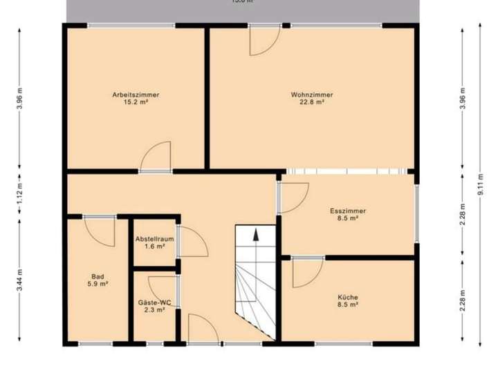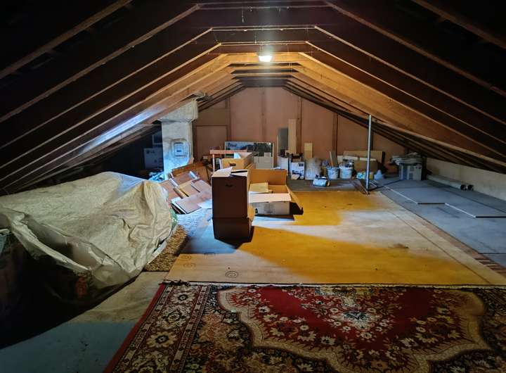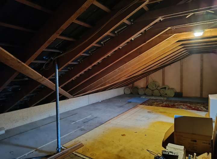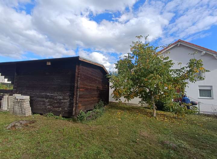 Das Untergeschoss ist massiv, das Erdgeschoss und das nicht ausgebaute Dachgeschoss als Fertighaus gebaut.