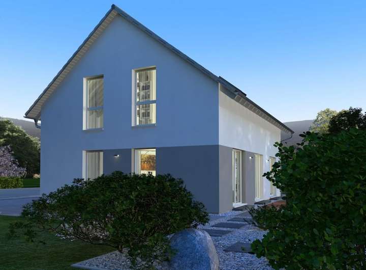 Ein echter Blickfang des Design 12 ist die Fassade, die durch ihre farbige Gestaltung zum echten Hingucker wird. Doch auch die Räume unter dem Satteldach haben auf mehr als 160 m² Wohnfläche vieles zu bieten: Von der Diele haben Sie Zugang in die Küche mit angeschlossenem Wohn-Ess-Bereich. Im Erdgeschoss führen fünf Türen nach draußen und sorgen zugleich für viel Licht. Ebenfalls auf dieser Etage: WC, Hauswirtschaftsraum sowie ein weiterer Raum, der als Gästezimmer oder Büro genutzt werden kann. Von der Diele führt auch eine Treppe ins Dachgeschoss. Hier steht den Eltern ein großes Reich mit direkt angeschlossenem Ankleidezimmer zur Verfügung, und auch für zwei Kinder ist viel Platz zum Toben, Schlafen, Spielen oder Lernen. Ein echtes Highlight: das knapp 16 m² große Badezimmer.