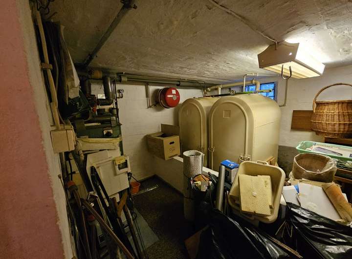 Das Badezimmer im Untergeschoss – typisch für diese Siedlung – ist mit Dusche, WC und zwei Waschbecken ausgestattet. Ergänzt wird dieser Bereich durch einen funktionalen Hauswirtschafts- und Heizungsraum.