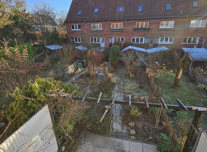 In einer ruhigen, verkehrsberuhigten Anwohnerstraße im begehrten Hamburger Stadtteil Klein Borstel präsentiert sich dieses charmante Reihenhaus in der denkmalgeschützten Frank’schen Siedlung – einer der familienfreundlichsten und beliebtesten Wohnlagen der Stadt.