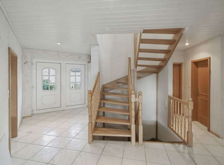 Dieses großzügige Einfamilienhaus bietet auf ca. 200 m² Wohnfläche ein komfortables und vielseitiges Wohnkonzept für Paare und Familien. Die 1992 erbaute Immobilie wurde stets sorgsam instand gehalten und befindet sich in einem soliden Zustand. Durch die bereits freigelegten Wandflächen bietet Ihnen zudem die ideale Gelegenheit, die Räume ganz nach Ihren eigenen Vorstellungen zu gestalten.