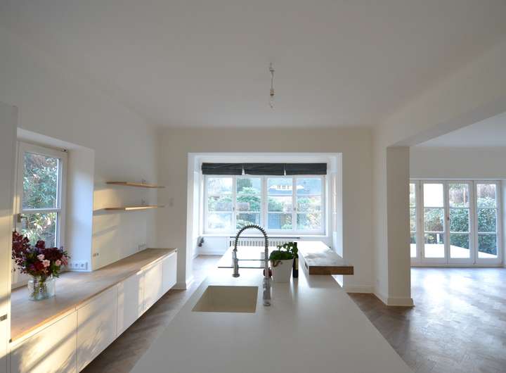 Ein Zuhause mit Charakter! Die sanierte Kaffeemühle mit der klassischen Rotklinkerfassade vereint hanseatische Architekturtradition mit modernem Wohnkomfort, Stil und ganz besonderer Atmosphäre. Das Haus öffnet sich im Inneren großzügig und hell: Das Erdgeschoss wurde zu einem weitläufigen Wohn- und Essbereich zusammengeführt, der durch zusätzliche Fenster in beide Gartenrichtungen ein wunderbares Raumgefühl und viel natürliches Licht bietet. Der Blick fällt dabei sowohl in den idyllischen Südgarten mit Terrasse als auch in den ruhigeren, geschützten Nordbereich. Der Mittelpunkt ist die offen gestaltete, hochwertig ausgestattete Küche mit Kochinsel – sie lädt zum Kochen & Verweilen ein. Der Kamin im Wohnzimmer gibt dem Haus im Winter viel Behaglichkeit. Die stilvollen Bäder, das schöne Eichenparkett und Deckenhöhen von bis zu 2,90 Metern schaffen Geräumigkeit und Eleganz. Im Obergeschoss finden Sie drei Schlafzimmer und ein großzügiges Familienbad. Das ausgebaute Dachgeschoss beeindruckt mit einem offenen Giebelbereich und einem geschmackvollen Bad en Suite – ein echter Rückzugsort mit viel Ruhe und Weitblick. Das Haus ist vollständig unterkellert und bietet neben den klassischen Nutzräumen auch einen wohnlich gestalteten Bereich mit Zugang zur kleinen Gartenterrasse, der sich ideal als Homeoffice und/oder Gästezimmer anbietet. Zwei PKW-Stellplätze auf dem Grundstück runden das Angebot ab. Ein wunderbares Zuhause für Familien, die das Besondere suchen – mit moderner Funktionalität, klassischem Charme und in einer der besten Lagen Hamburgs.