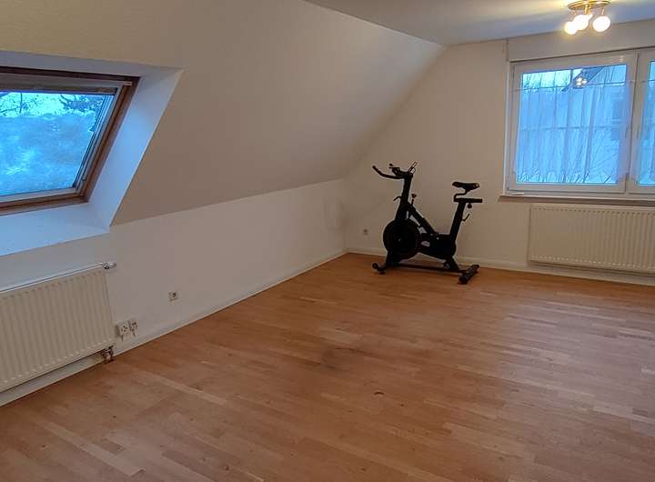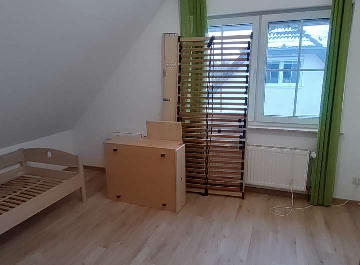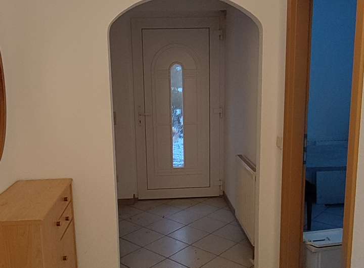 Diese gepflegte Doppelhaushälfte mit ca. 120 m² Wohnfläche und 4-5 Zimmern (2 Zimmer sind derzeit zusammengelegt) steht ab dem 01.03.2026 zur Vermietung. Das Haus erstreckt sich über 3 Etagen und bietet eine normale Innenausstattung. Eine Garage für Ihr Fahrzeug ist vorhanden und ein Gäste-WC erhöht den Komfort. Die Küche ist ausgestattet. Haustiere sind nach Absprache erlaubt. Das Haus verfügt über einen Garten mit ca. 500 m² Grundstücksfläche. Der nächste S-Bahnhof und EInkaufsmöglichkeiten sind ca. 15 min zu Fuß entfernt. Das Haus liegt an einer ruhigen Nebenstraße. Gegenüber des Hauses liegt freies Feld.