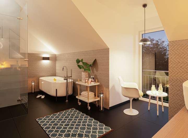 Dein Zuhause wird mit allem ausgestattet, was du für einen stressfreien Einzug benötigst. Von Fliesen für das gesamte Erdgeschoss bis hin zu bodengleichen Duschen mit Echtglasabtrennung ist alles vorhanden. Dank des hohen Vorfertigungsgrades wird der Bauprozess effizient gestaltet.