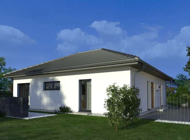 Wählen Sie auch bei diesem Bungalow zwischen Walm- und Flachdach.