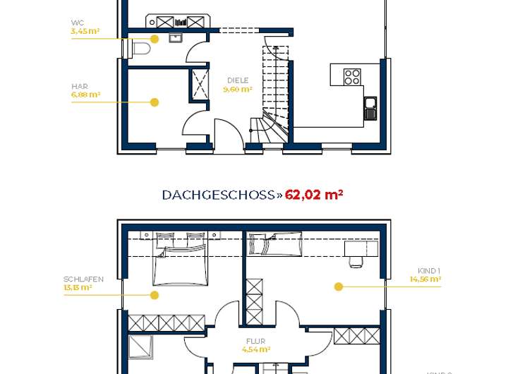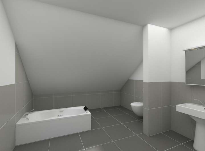 Im Dachgeschoss befinden sich weitere 3 großzügige Schlafräume sowie ein großzügiges Bad mit wandhängendem WC , Waschbecken und einer Dusche. Eine Badewanne ist natürlich auch möglich. Selbstverständlich können individuelle Wünsche beim Bau berücksichtigt werden.