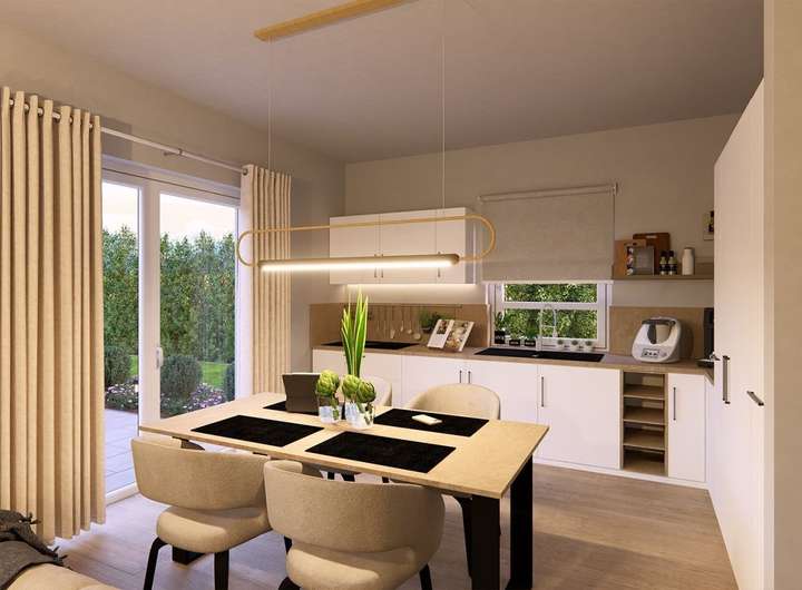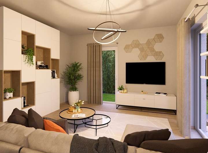 Die Stadtvilla 9 nutzt ihre 107 m² perfekt - mit einem Grundriss, der modernes Familienleben leicht macht. Im Erdgeschoss öffnet sich der helle Wohnbereich mit Küche und Essplatz zu einem Raum, in dem der Alltag fließt: gemeinsam frühstücken, Hausaufgaben begleiten, abends entspannen. Große Fenster holen Licht und Garten hinein. Ein Gäste-WC und der praktische Hauswirtschaftsraum sorgen für Ordnung im Alltag. Oben findet jeder seinen Platz: ein Elternzimmer als Rückzugsort, zwei Kinderzimmer zum Spielen und Träumen sowie ein Familienbad, das den Tag mit Leichtigkeit beginnen lässt.