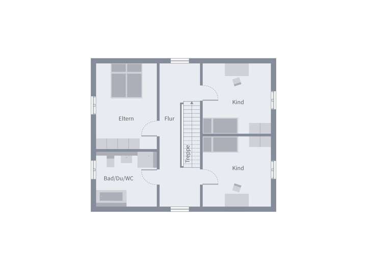 Das Design 10.2 steht für modernes Wohnen mit Charakter. Auf 140 m² verbindet sie Design und Alltag auf harmonische Weise. Der offene Wohn- und Essbereich bildet das Herzstück - hell, großzügig und mit einer geraden Treppe, die als Designelement den Raum gliedert. Büro, Gäste-WC, Hauswirtschaftsraum und Speisekammer machen das Erdgeschoss ebenso funktional wie stilvoll. Im Obergeschoss empfängt ein lichtdurchfluteter Flur, der zu den privaten Rückzugsorten führt: ein Elternzimmer, zwei Kinderzimmer und ein großzügiges Familienbad. Unter dem klassischen Satteldach entsteht ein Zuhause, das Ästhetik und Geborgenheit vereint.