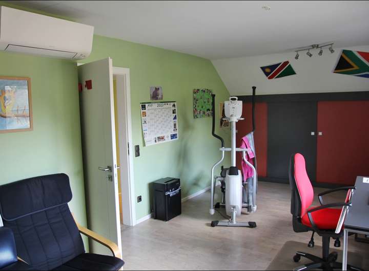 Dämmung der obersten Geschossdecke; Klimageräte (Daikin); Kaminofen Wohnzimmer; getrennte Zähler; Glasfaser liegt im Haus.
