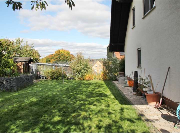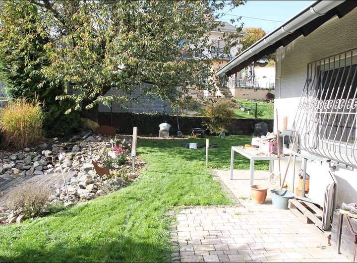 Das schön angelegte Grundstück erstreckt sich über ca. 654 m². Dort befinden sich eine angelegte Terrasse mit elektrischer Markise (inkl. Halterung), ein Teich, eine Gartenhütte und eine Wiese. Der Garten ist von einem massiven Zaun mit einer Höhe von 1,50 m umgeben.