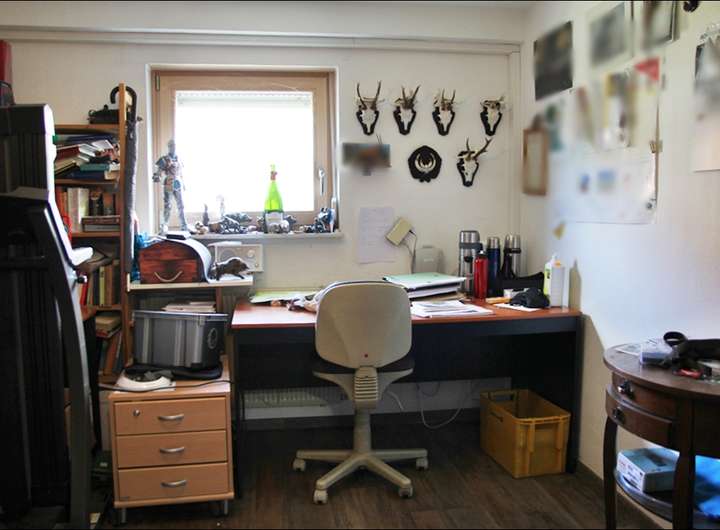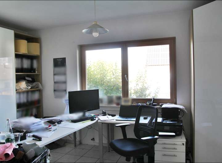 Wohnzimmer, Schlafzimmer, Büro, Badezimmer, Küche, Gäste-WC, Flur und Terrasse.