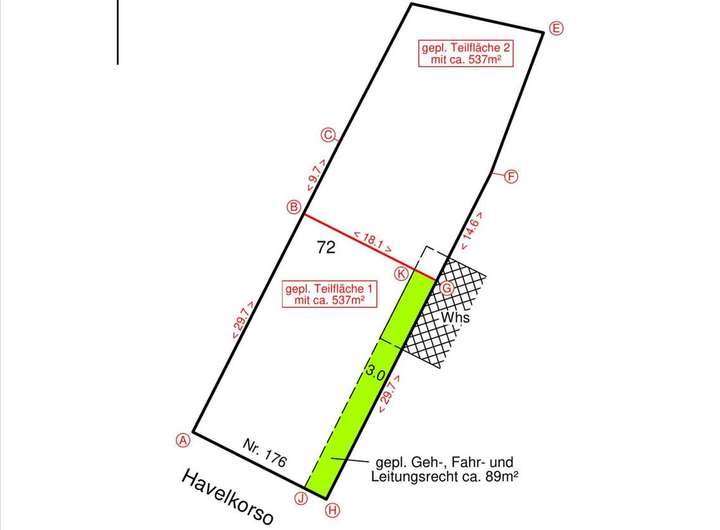 ca. 18,1 m Breite / ca. 29,7 m Länge (siehe Teilungsentwurf)